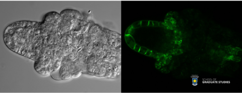 No matter how small, each plant plays a crucial role in human life and the planet’s ecosystem, and each plant begins with a seed. Seed formation starts in a flower, and the development of an ovule is the first step in this process. This image shows an ovule in early development, no larger than the diameter of a human hair. Despite its small size, it holds great potential, and its growth is carefully regulated by a complex network of genes. The green colour in the developing ovule comes from the Green Fluorescent Protein (GFP), originally derived from a jellyfish. When exposed to ultraviolet light, GFP emits a brilliant green glow. GFP allows scientists to track specific proteins inside living cells, providing insights into where and when these proteins are active. In plant ovules, GFP helps identify crucial genes for seed development, offering a closer look at the “bright” beginnings of life.