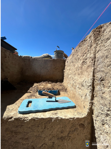 During the summer of 2024, I volunteered at the University of Lethbridge's Archaeological Field School at Head-Smashed-In Buffalo Jump. This photo shows the unit that a friend and I were excavating in an area of the site called the Processing Area. Here, we look for bison bones, projectile points, and other evidence of past human occupation. The trowel in the photo is the main tool we use to dig through the layers of sediment to find these artifacts. Later, the artifacts are moved to the ULethbridge Archaeology Lab, where we analyze and catalogue them with the goal of understanding the lives of past people who used the buffalo jump. I took this photo from 1.5 metres underground in a previously excavated unit from the 2021 field season, in which I had also participated as an undergraduate student.