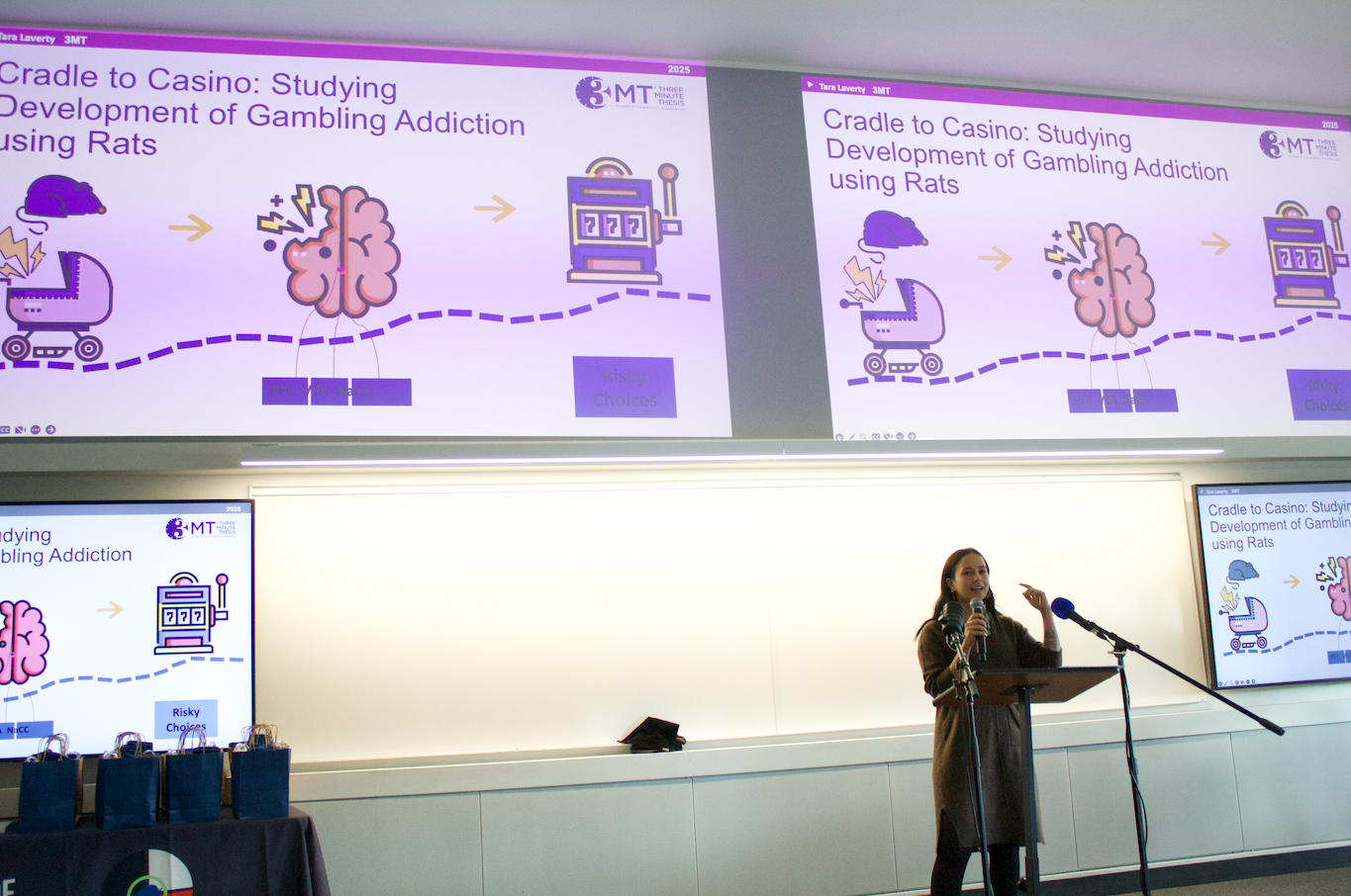 Childhood adversity is a known risk factor for developing mental health and addiction disorders, including gambling. Yet, so little is known about exactly how a gambling addiction develops. My research connects multiple leading theories to attempt to longitudinally study gambling behaviours in rodents. I'll be using an early life stress model to compare how stress impacts gambling and impulsivity behaviours and analyzing neurobiology - aiming to create an animal model that can be used for further study on addiction development and treatment.
