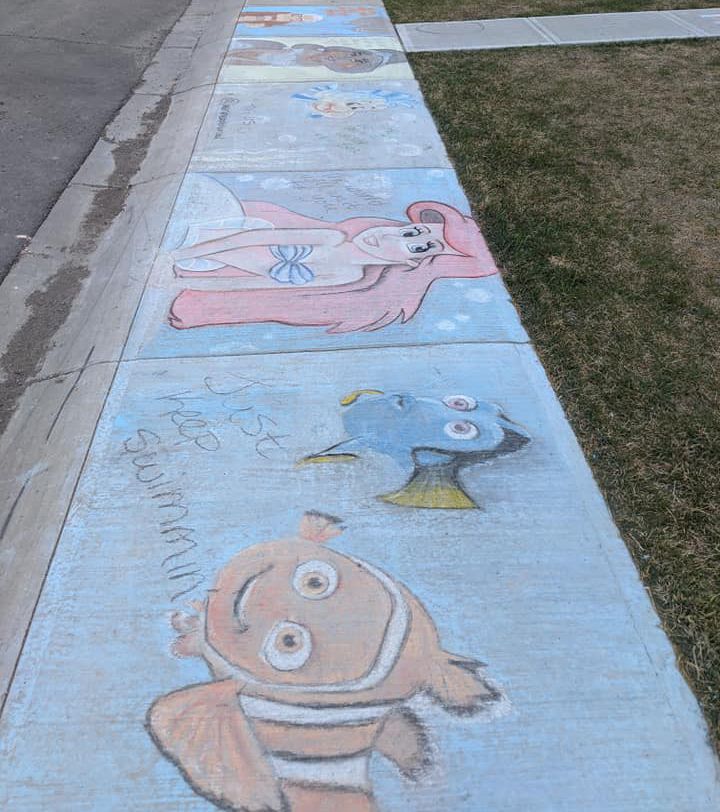 Lewis has also been instrumental in bringing joy and excitement to sidewalks in Lethbridge. From cartoon characters to birthday messages, she’s been creating vibrant chalk art to cheer up friends and neighbours.