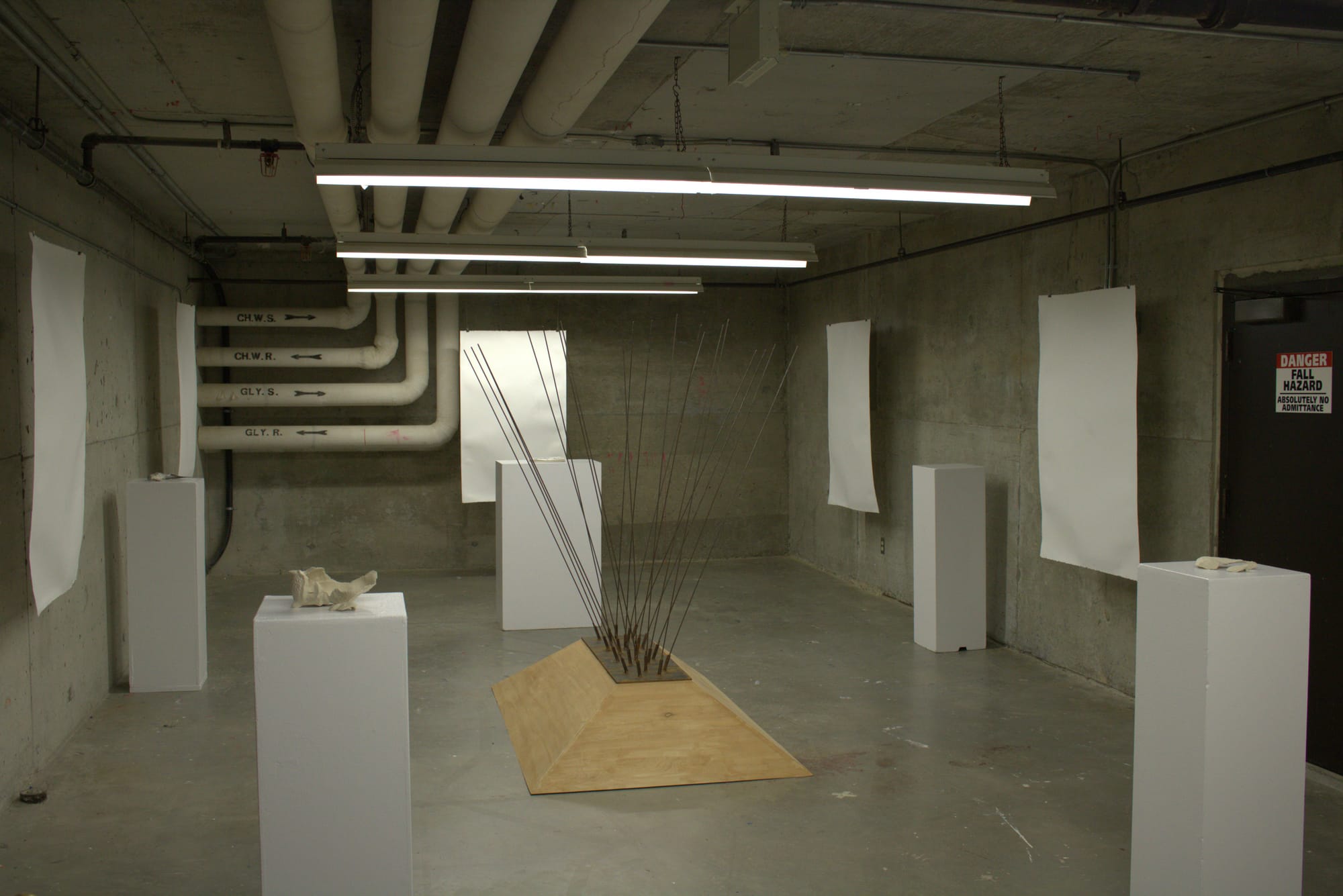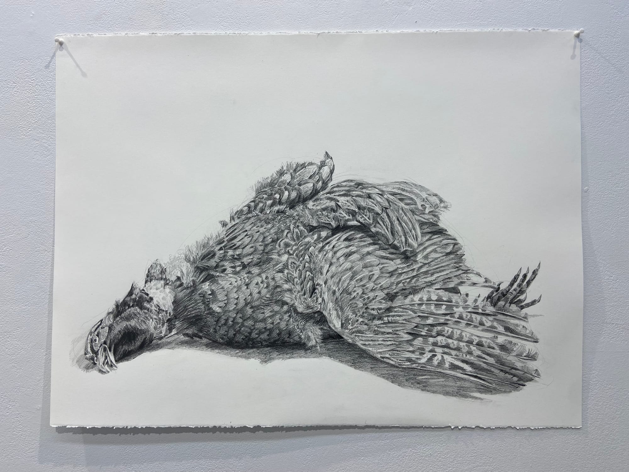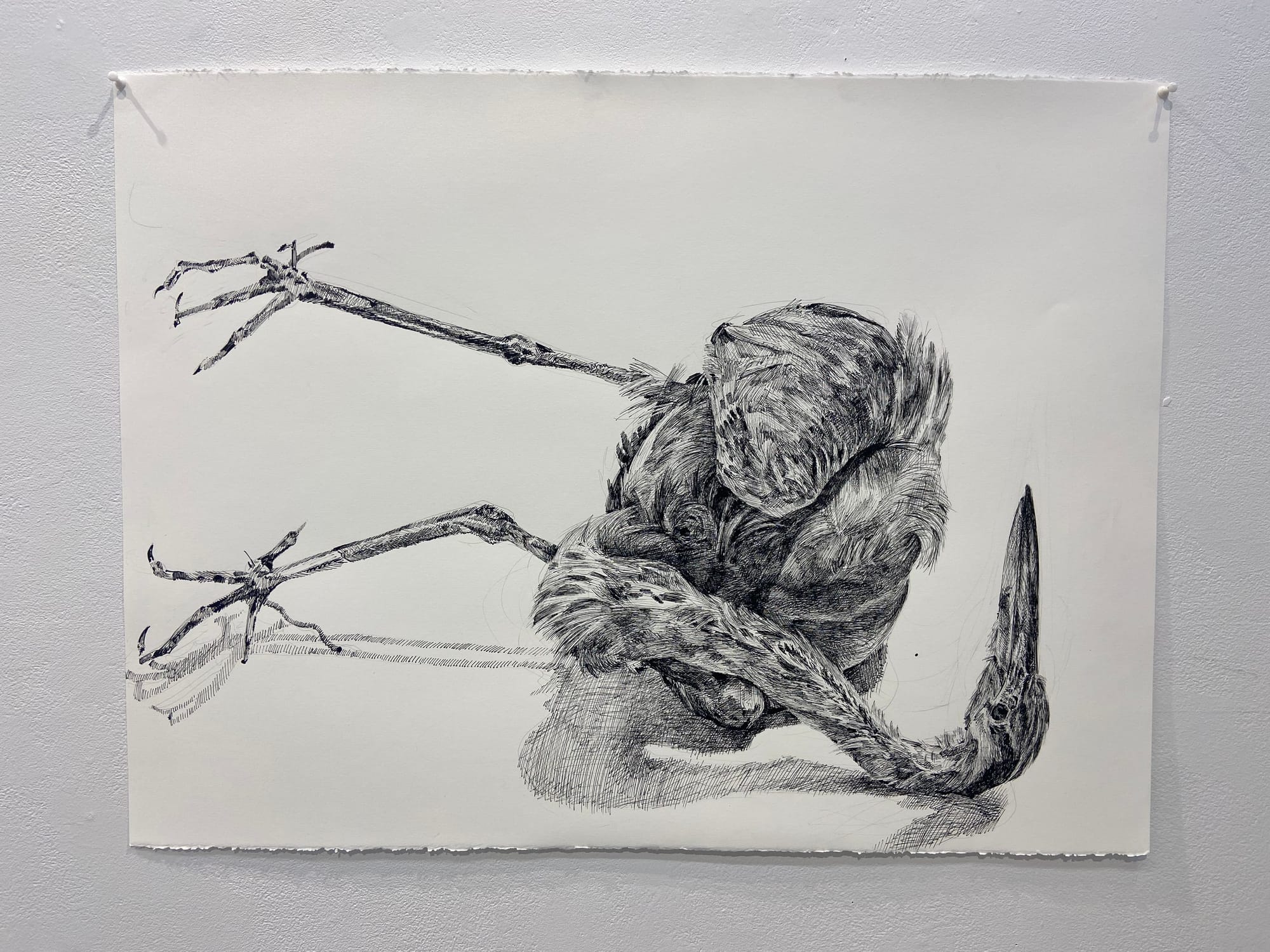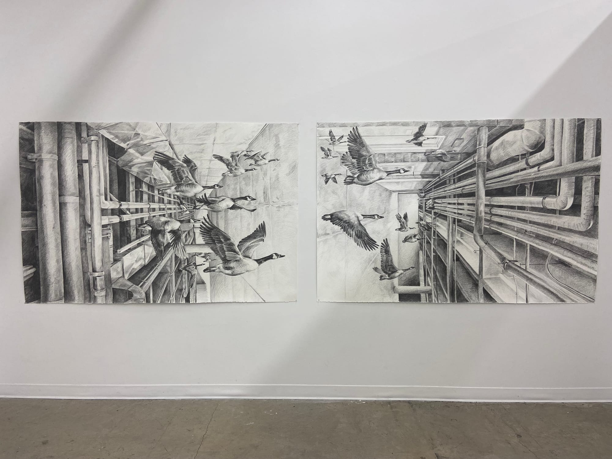 This body of work presents the viewer with themes addressing the human-urban impact on the lives of birds. By observing a series of overlooked interactions between humans and birds via the middleman of industrial design, I explore bird-strikes, bird-spikes, bird deterrents, and a wayward corpse. Through my artwork, I aim to emphasize industrial impacts that limit the lives of birds and provide the viewer with something confrontational, demanding individual conclusions and realizations.