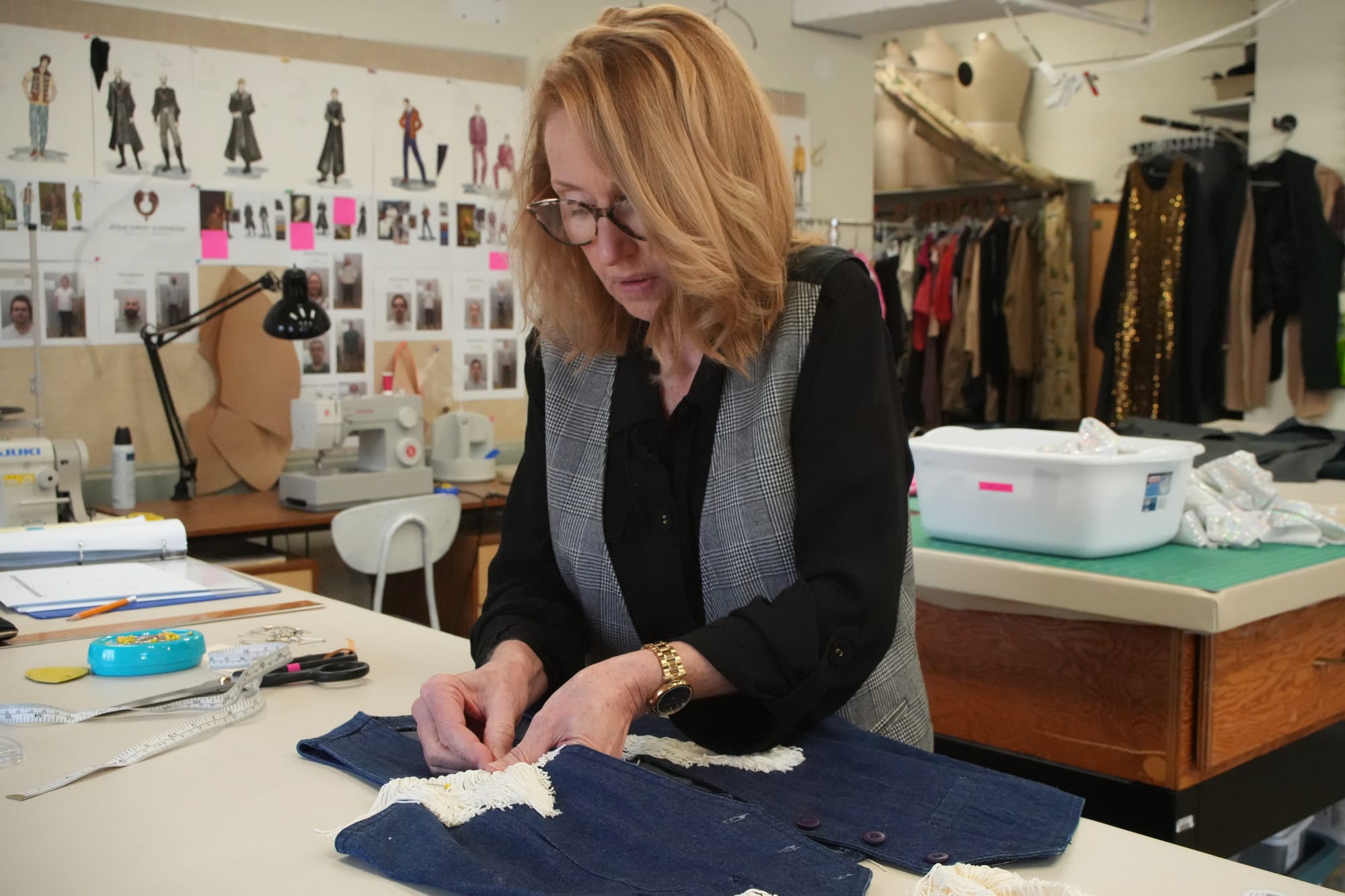 Creating the costumes requires not only searching for what might already be on hand in the Costume Shop but also ordering new materials, dying fabric, painting clothes and shoes and fabricating new materials using whatever might be on hand.