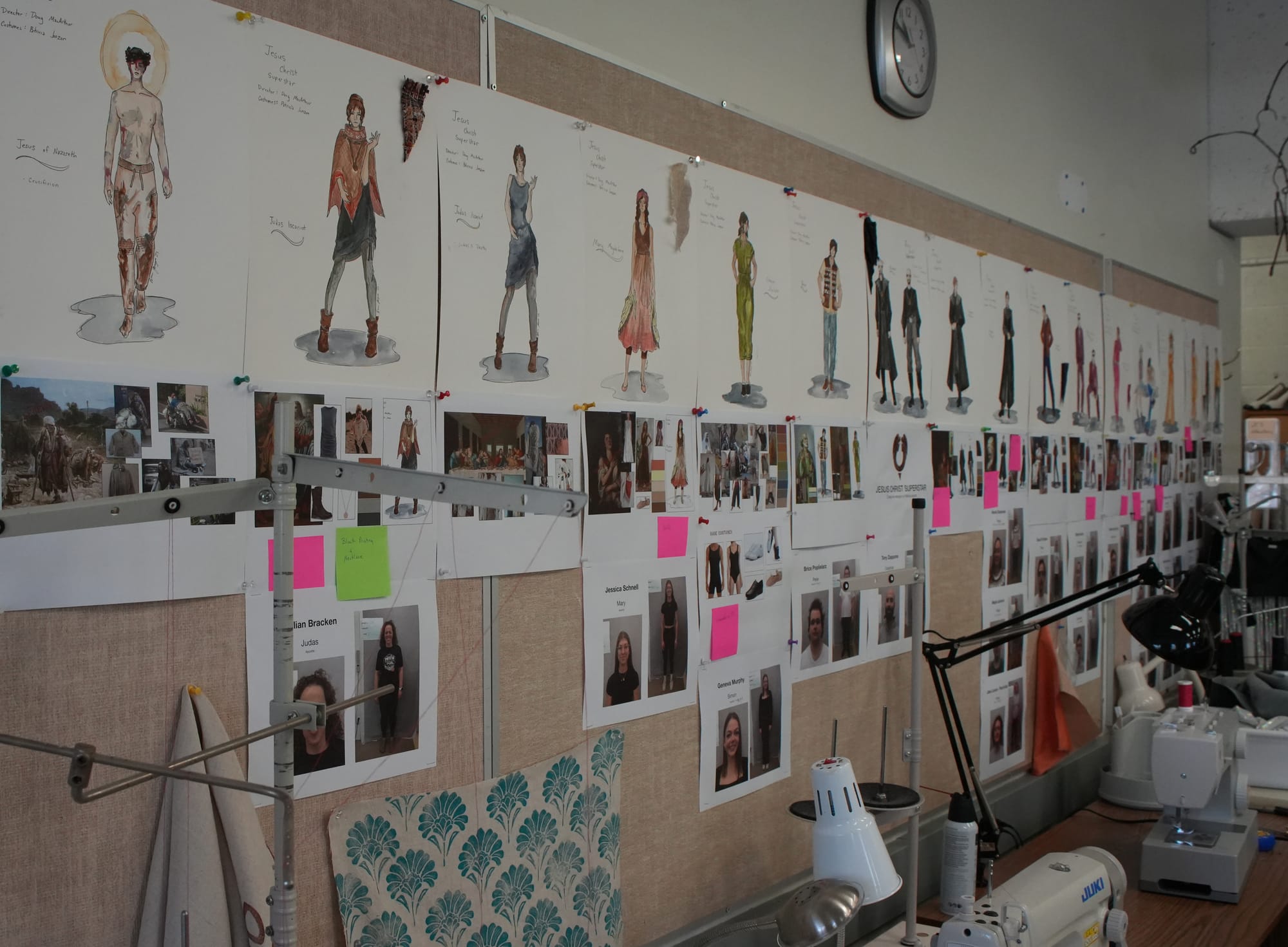 Jonzon began her research by rewatching the musical and talking with director Doug MacArthur about his vision for the production. She collected images for the various characters to create a design bible and then sketched out ideas for each costume, including fabric and colours. For example, an actor dressed in a soft harem pant, or a jogger-style pant won’t be seen as someone with authority, while someone like Pontius Pilate, the governor of the Roman province of Judea, would need a costume that shows he has more power.
