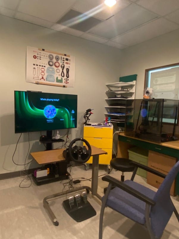 The potential expansions include devices such as mouth joysticks, controllers that use voice commands for patients with blindness, foot controls for patients who are unable to use their hands and more. Kyfiuk and her colleagues use the game room’s 3D printer to assist in producing some of the adaptive gaming equipment such as a one-handed remote controller for a patient who lost the use of one hand. Recently, there have even been patients from other wings at the hospital, such as the burn wing, with injuries on their hands, who come to use the gaming room where the recreation therapists set up equipment that can be used hands-free. The goal is to get patients back to living as independently as possible, starting with adaptive gaming technology to allow for a return to gaming. The hope is for each patient to eventually not need to use these devices and be able to game independently. The gaming equipment does not have to be used for rehab, but it does have that capability. The main purpose of the room is enjoyment and fun, bringing joy to the patients.