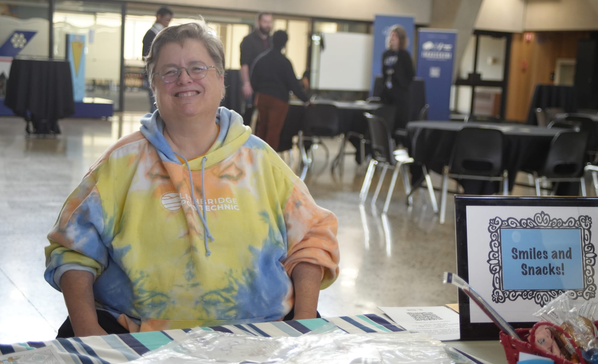 Smiles and Snacks, part of the Kerber Friendship Program, was born. Volunteers hand out snacks and smiles once a week at the college and university. Some volunteers bring their knitting or crocheting, and other craft materials are also available. The popular program never lacks volunteers.