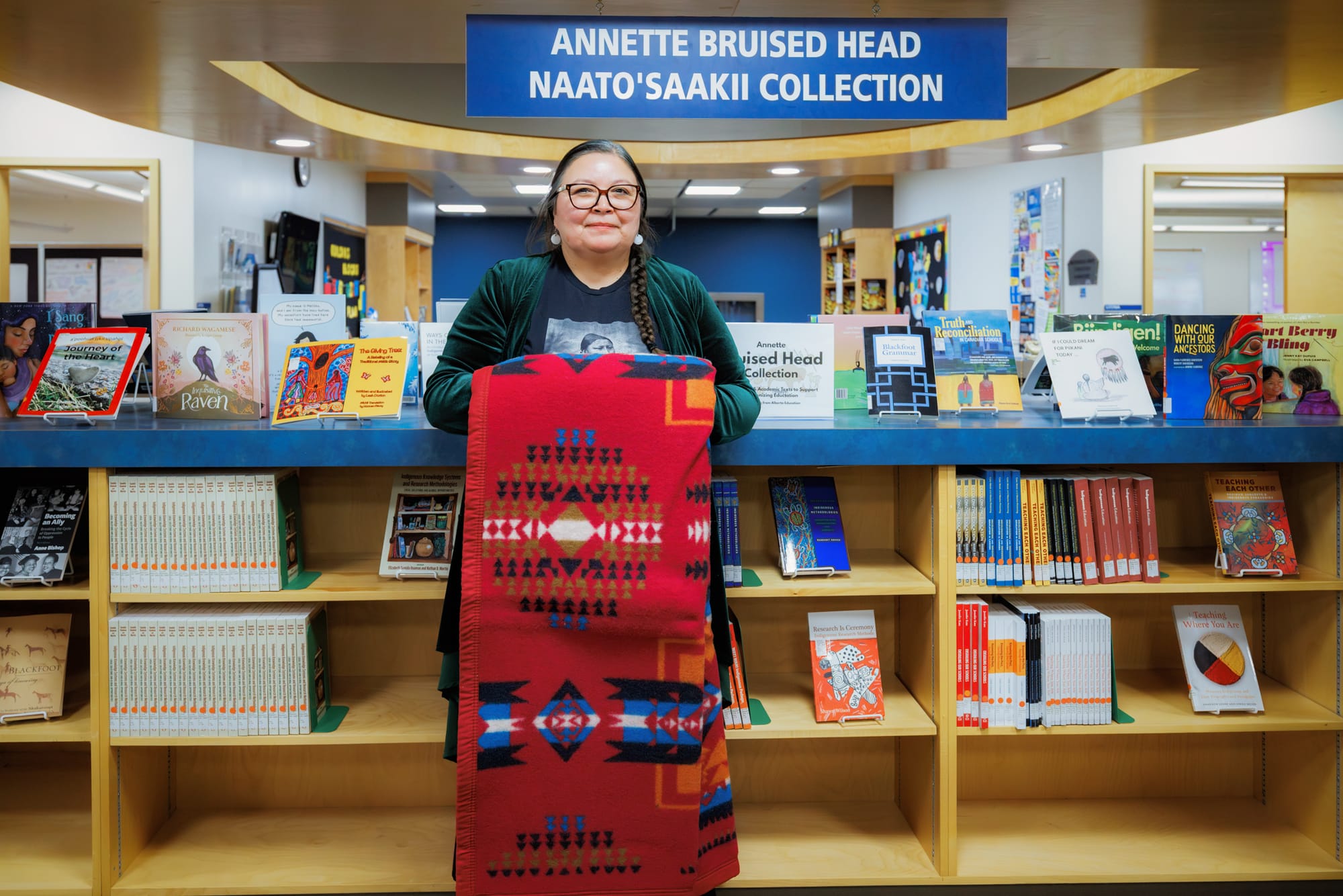 The Naato’saaki (Sunwoman) Annette Fox-BruisedHead Collection features titles by Indigenous authors and is sourced from Indigenous-owned businesses. Named after Annette Fox-BruisedHead (BSc ’00, BEd ’02, MEd ’10), the collection is an exciting new resource for student-teachers to enhance their pedagogy through Indigenous Ways of Knowing.