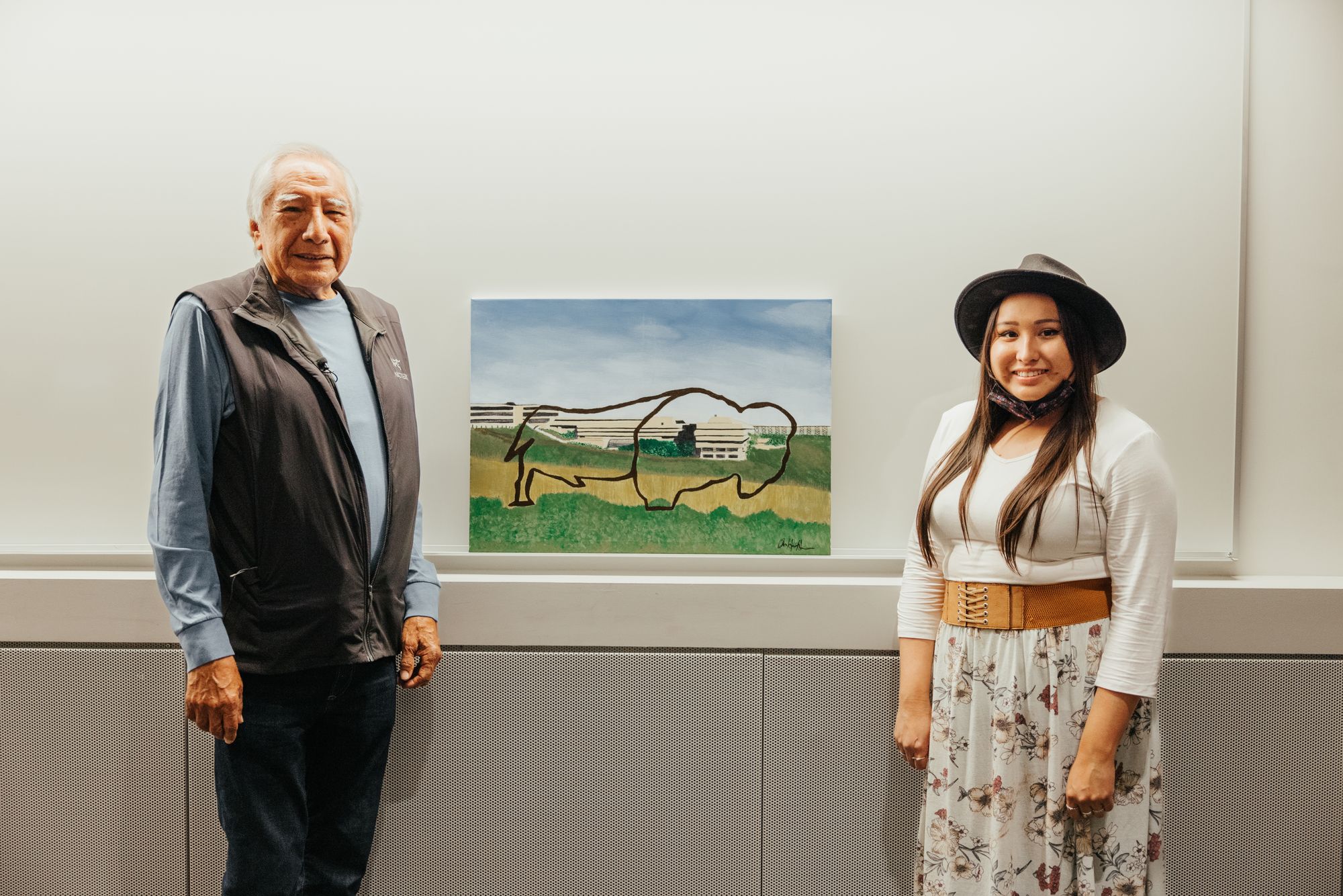 Yes, a few, actually. One of the most important ones, I'd say, is Miguelzinta Solis (MFA '19), assistant professor of Indigenous Art Studio—he taught me everything I needed to learn about what it means to become a professional artist. He taught me what professional practice looks like and even helped me write some grants/scholarships as well. Another one I'd say is Dr. Josephine Mills, the director for the ULethbridge Art Gallery. She helped me obtain casual employment with the gallery which led to other job opportunities within the University such as in New Media working as an assistant for Christine Clark (MFA '14), with the director for Mootookakio'ssin in partnership with the Art Gallery, and even in the neuroscience department as an Indigenous Infographic Designer for the Building Brains Together organization. I would also like to acknowledge Dr. Devon Smither, associate dean in the Faculty of Fine Arts, who helped co-curate my most recent exhibition at the Southern Alberta Art Gallery over the past year. Her contributions to the project really helped boost my name, and practice within the city of Lethbridge. Lastly, Jodie Flamand (BA '14), Indigenous student advisor for Iikaisskini Indigenous Services, for always holding my best interests at heart and for her immense support over the years both professionally and personally. She has done a tremendous job in representing Indigenous students and giving them a safe space. Jodie always made sure that I was receiving the proper resources, support, and connection within and around the ULethbridge community.