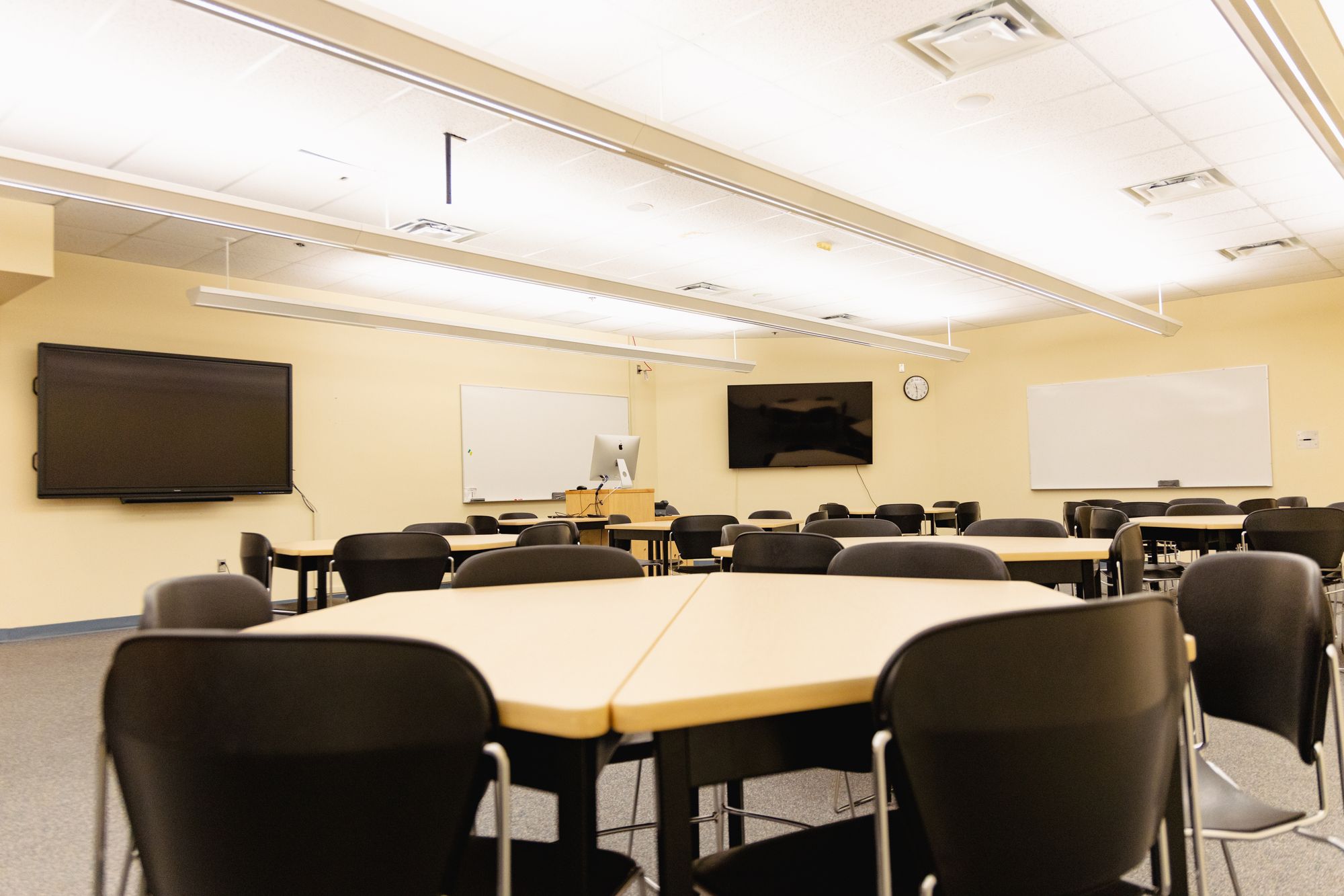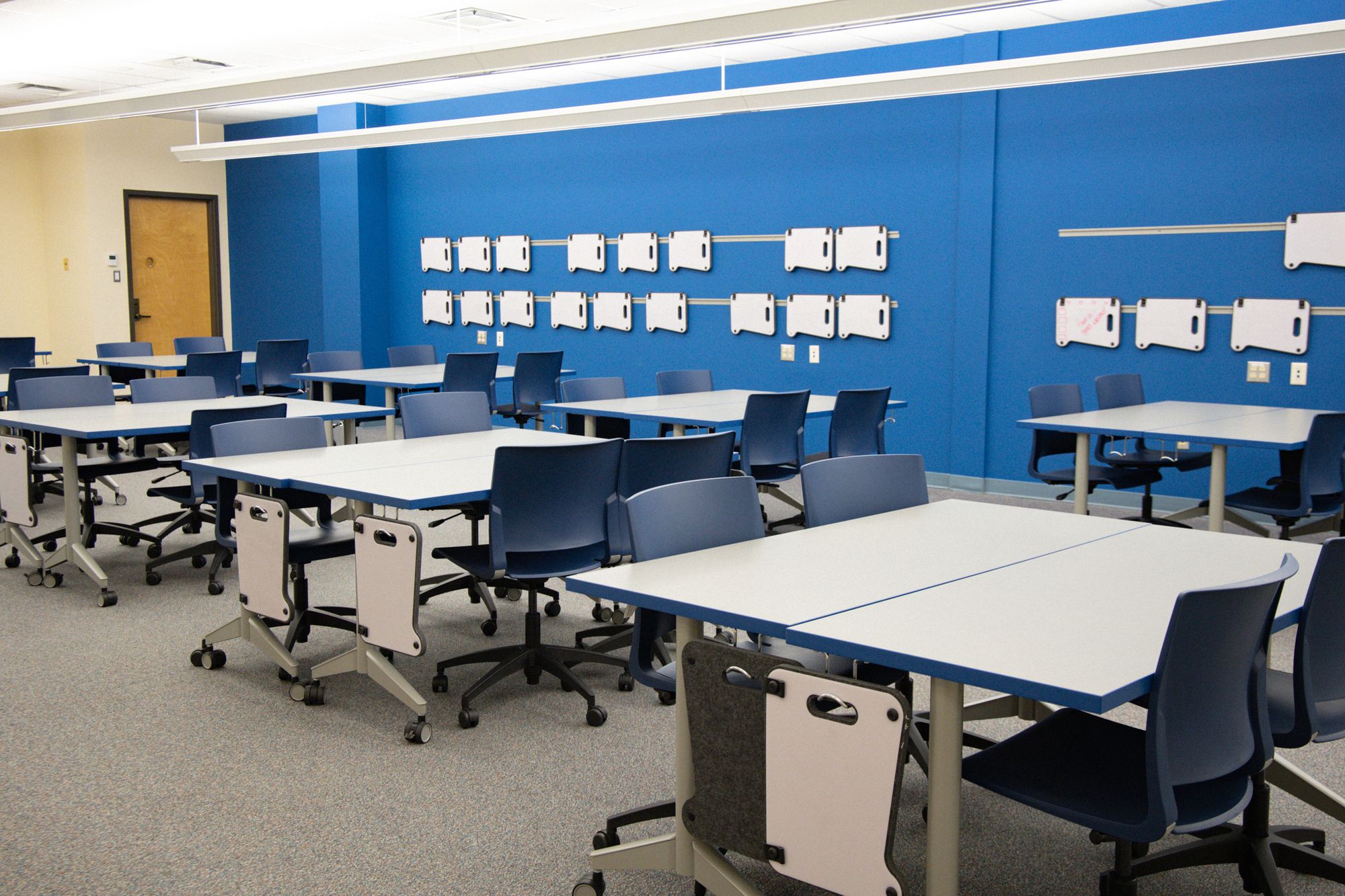 “We think that it will cut down our costs of paper considerably,” Bright says. “And from a teaching perspective, having a lot of wall space covered in whiteboards really encourages a lot of participation, too. These classrooms will give instructors that opportunity to get back to a style of teaching that’s really interactive and where everyone participates; it’s the difference between passive learning and active learning, and that space really does contribute to that.”