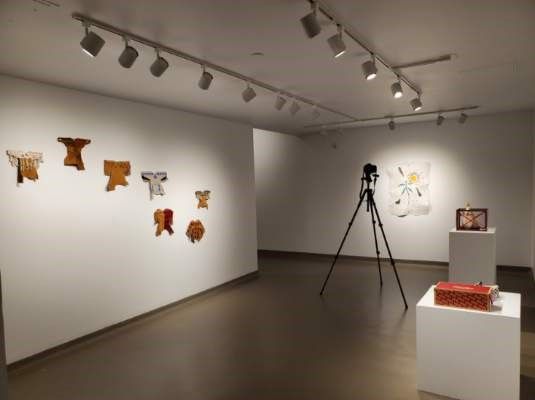 “When restrictions began to open up, I went with David Smith, Assistant Curator and Preparator, to remind ourselves what student work we had as we began to think about an online version of the exhibition. Standing in that small storage room, I felt so sad looking at objects that lacked the vibrancy of the artists, the energy surrounding the exhibition; works that were incomplete, that didn’t have their context. And then it struck me, this is like visiting the historical objects in the museum storage in England.”