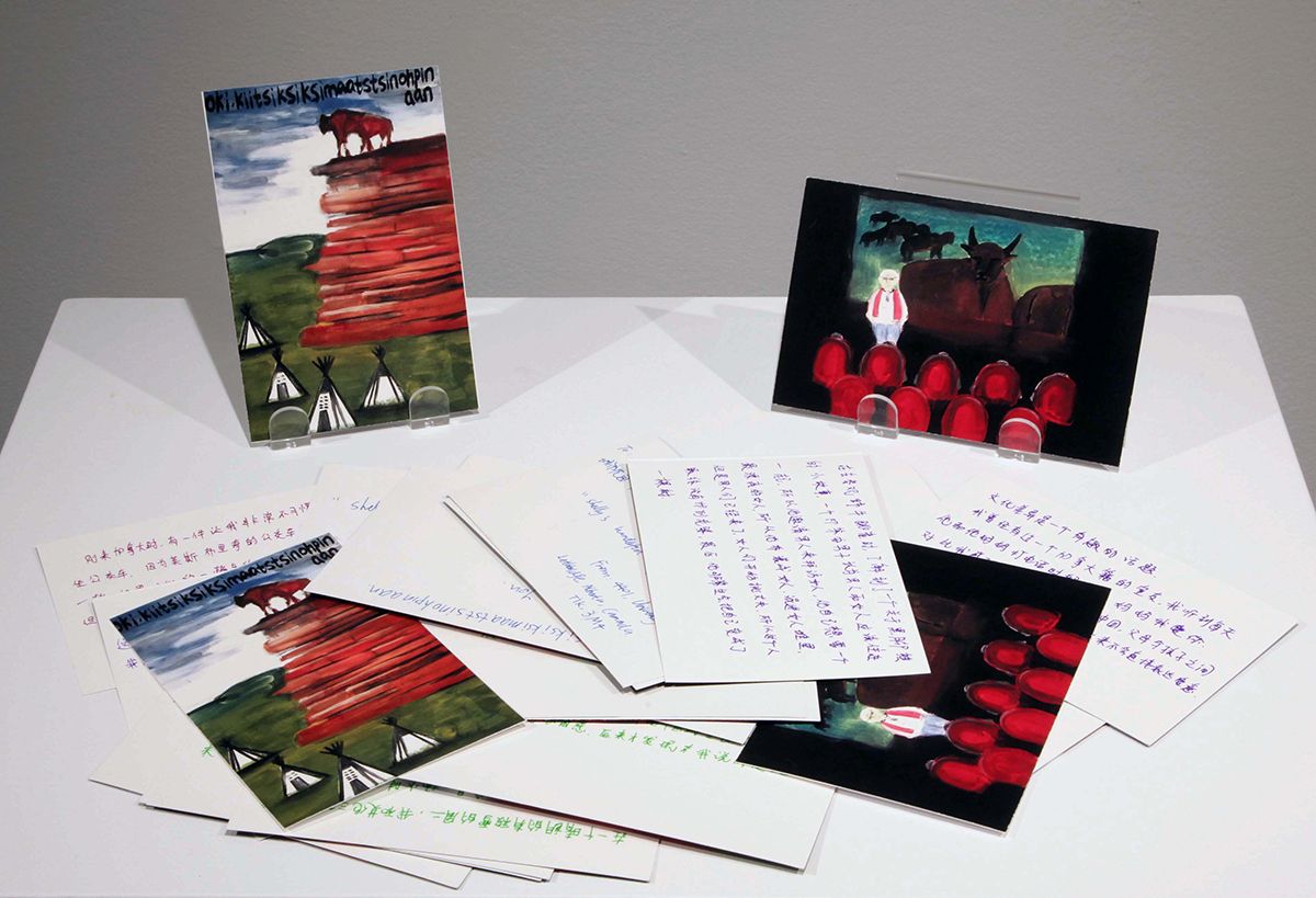 “Here in Lethbridge, standing in the small storage space looking at the forlorn student art works that had been left behind when the quarantine began, I learned one of the many important lessons I am gaining from working on Mootookaikio’ssin,” says Mills. “I realized that non-Indigenous viewpoints also include a vital connection between people and art works, even if we don’t conceive of the objects as living beings.”