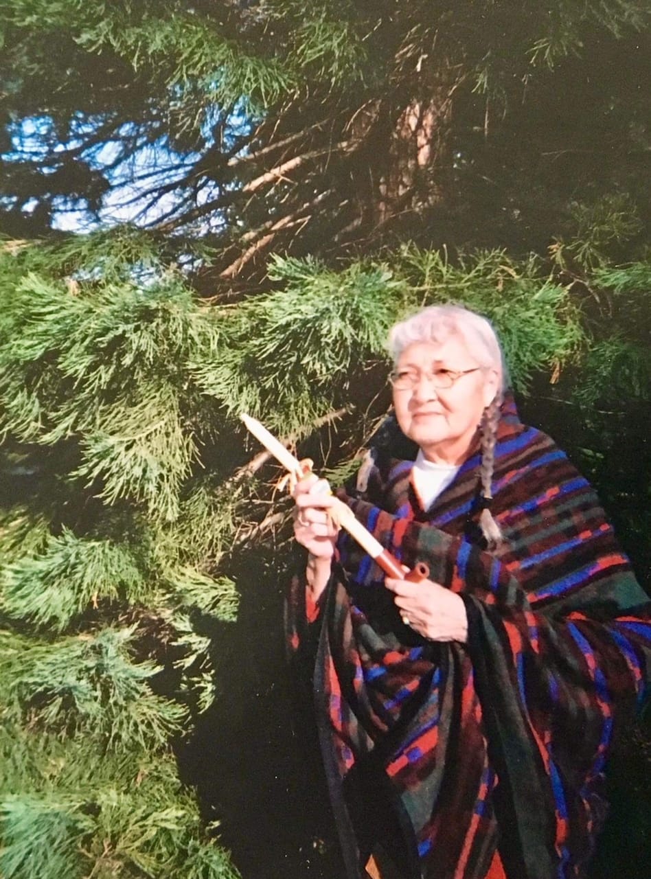 Helen was acknowledged with an Esquao Award in 2004 for her active involvement in preserving and teaching Indigenous culture and for her contributions as a strong Indigenous woman. She was a respected Elder and pipe carrier, often asked to do opening and closing prayers in the Cree language for gatherings of all kinds and helped guide committees asking for Indigenous knowledge. Helen also worked as an Elder for Northwest Children's Services, guided powwows, and conducted eagle feather ceremonies and Sisters in Spirit walks. Her devotion to teaching and sharing Indigenous culture continued until her passing in 2018 at the age of 82.