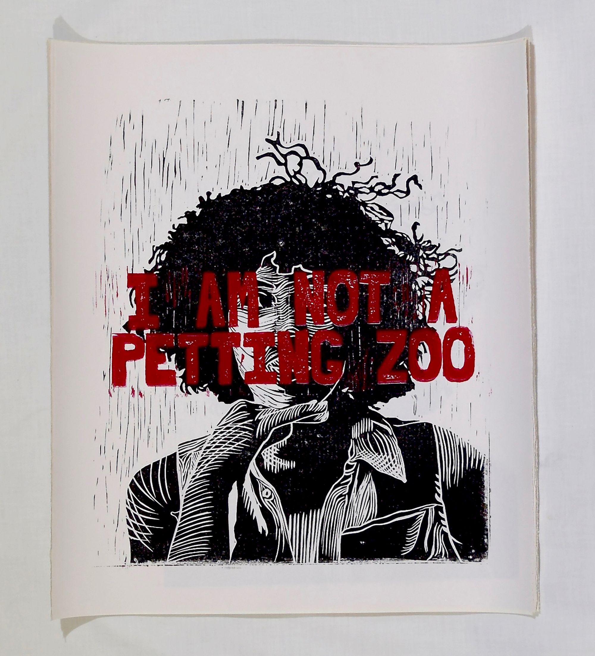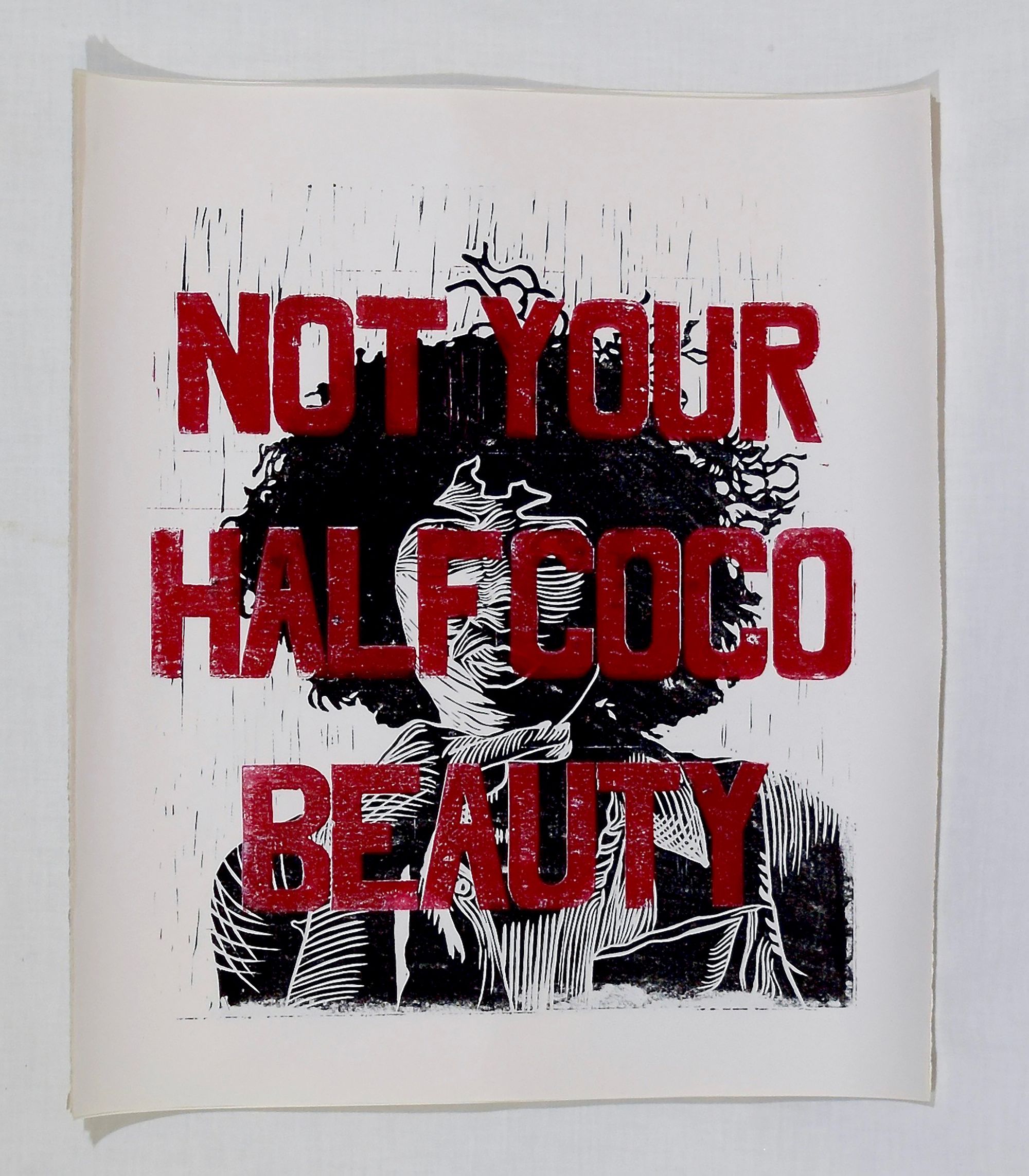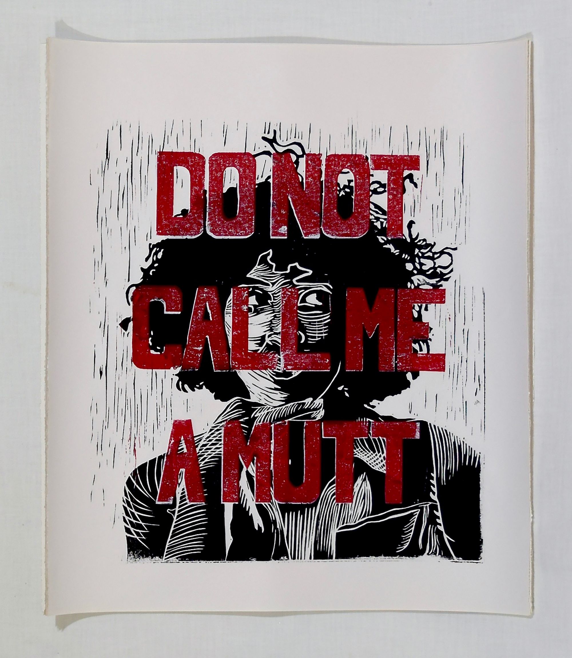 “I made a series of posters with the statements “I AM NOT A PETTING ZOO”, “DO NOT CALL ME A MUTT” and “NOT YOUR HALF-COCO BEAUTY” placed across a self-portrait,” Kaela says. The posters were placed throughout the university and around downtown Lethbridge.