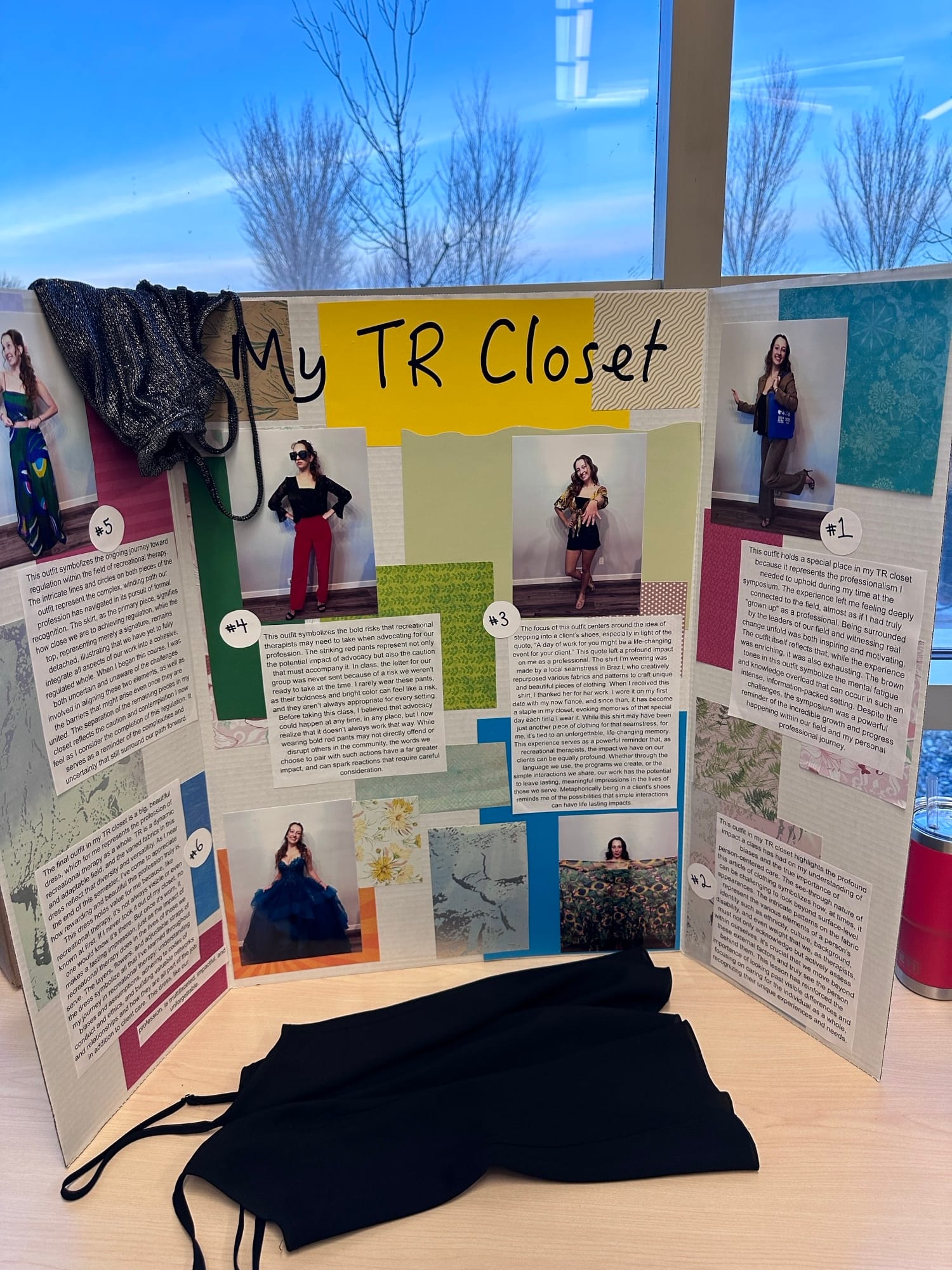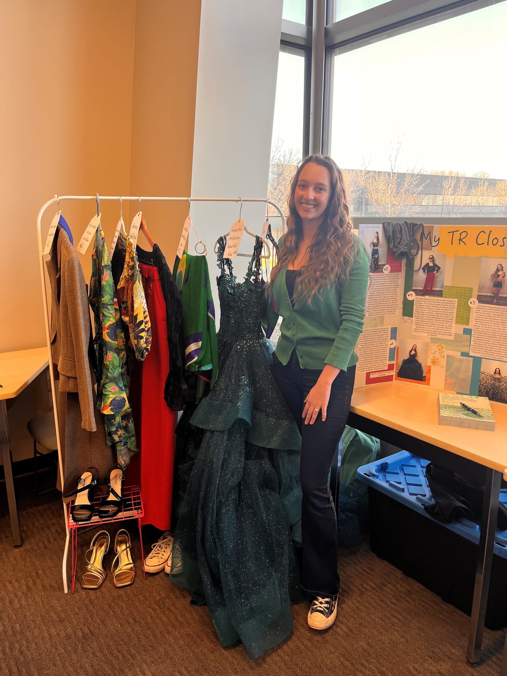 Julia Dayman created a project using her clothing to reflect the issues and trends that have shaped her learning throughout the class, calling it her TR Closet.