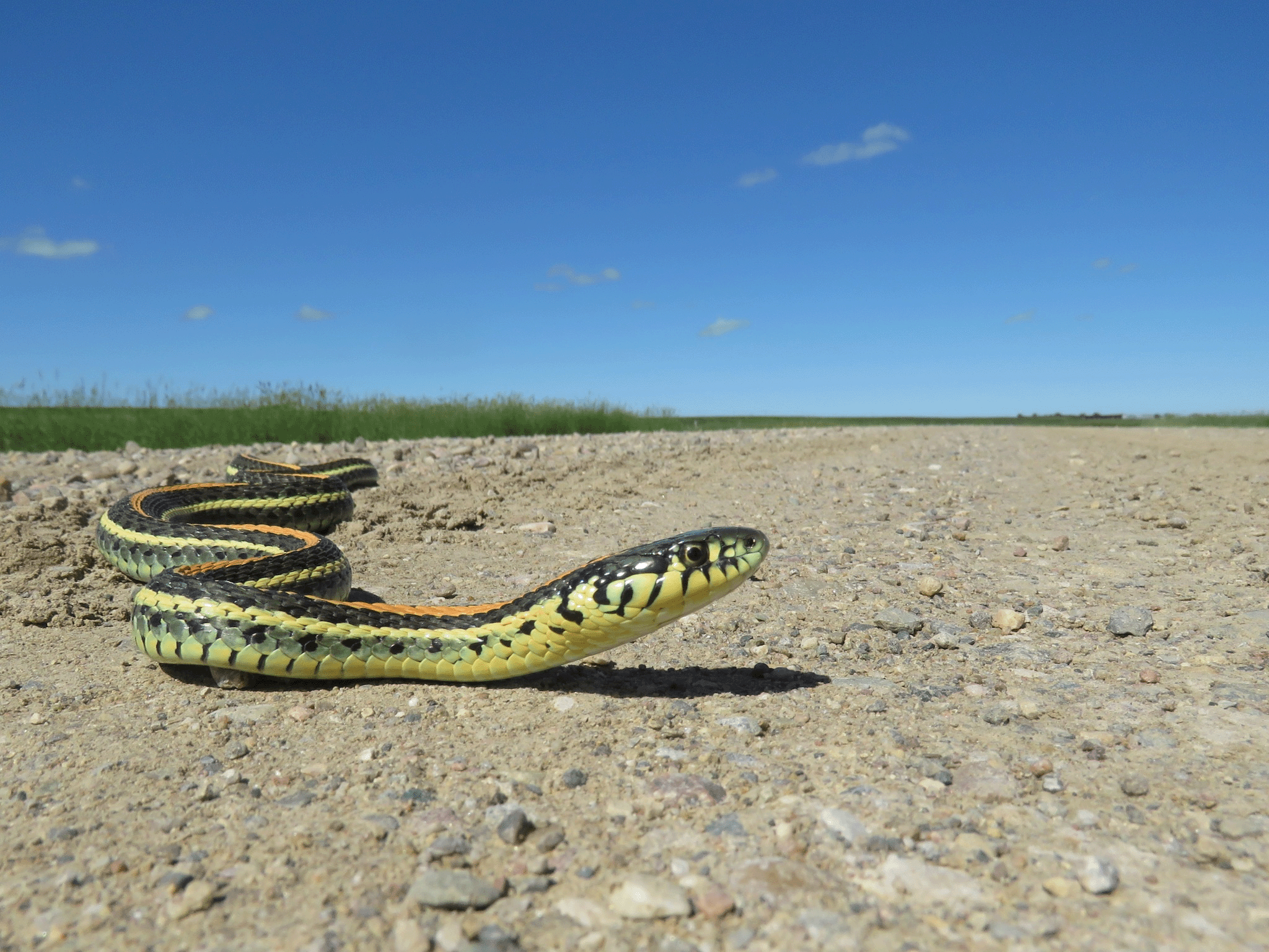 At left, a Northern Leopard frog (MD of Taber), a Lazuli Bunting (Crowsnest Pass), and a Plains Garter Snake (County of Warner)