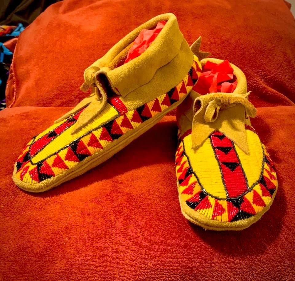 "These are the moccasins made for me by a woman from the Piikani Nation that I wore at my citizenship ceremony in 2018."
