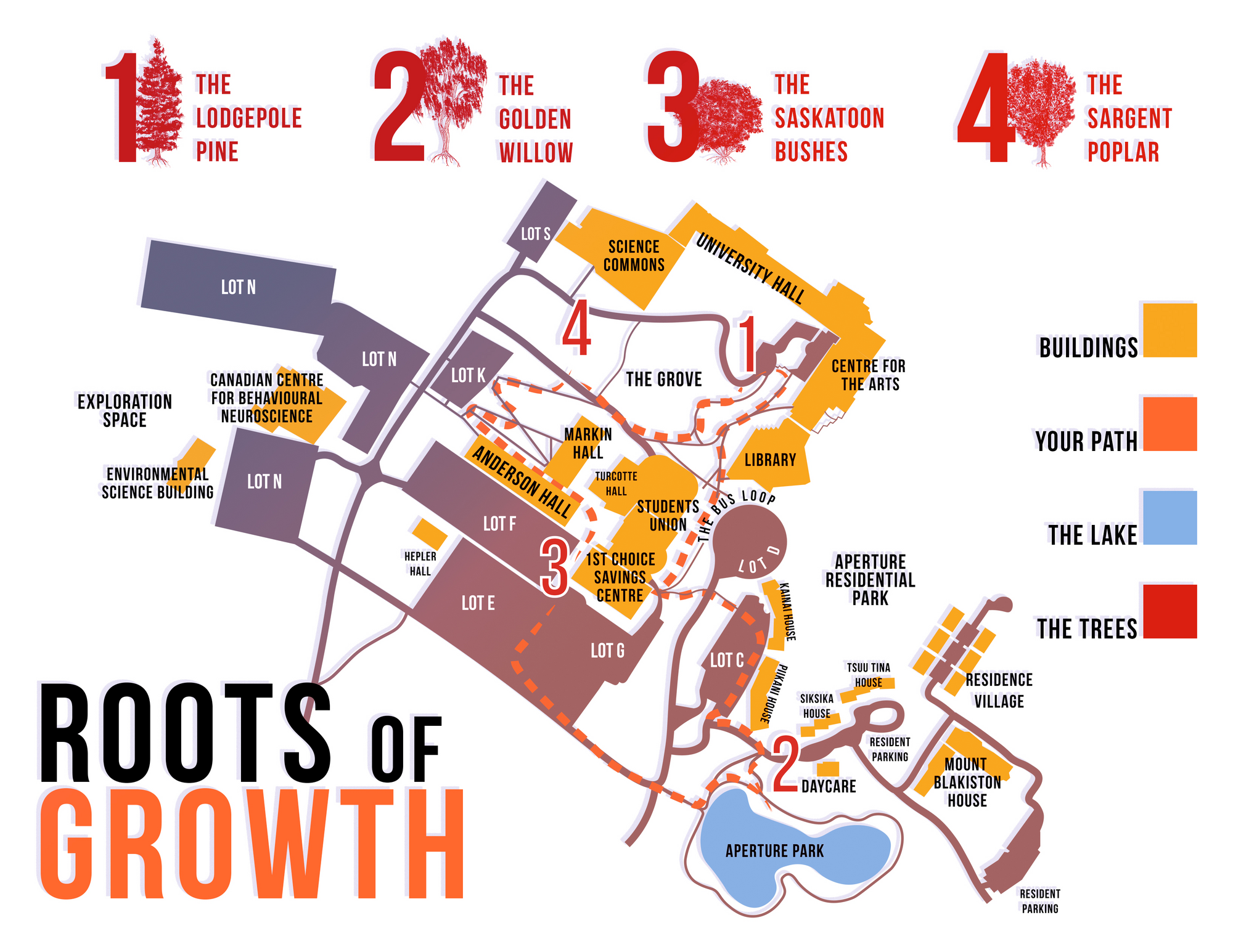 As a result of the project, three trees and two bushes have been planted around the ULethbridge campus—a Lodge Pole Pine, a Golden Willow, a Sergeant Poplar and two Saskatoon Berry bushes. Aysha says the plants were chosen in consultation with Indigenous Elders.