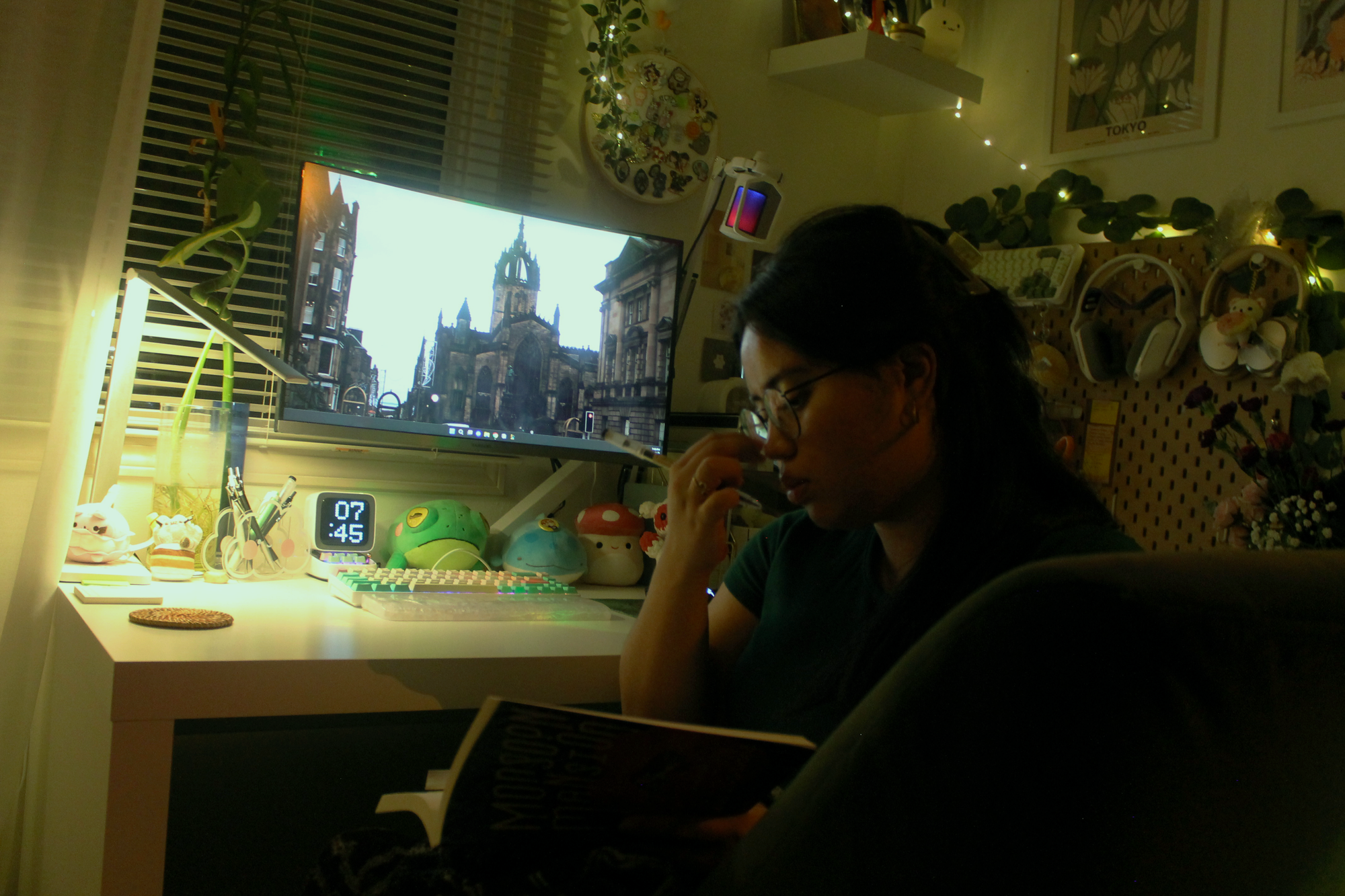 Funny enough, I don't do a lot of traditional reading in my free time! I listen to a lot of audiobooks while I do crafty activities like crocheting, digital art, illustration, and graphic design! I also play a lot of video games with my friends and build keyboards while watching shows. If not cooped up inside with a cozy blanket, I am at the dance studio, trying new choreography to new music and chatting with my peers at the studio!