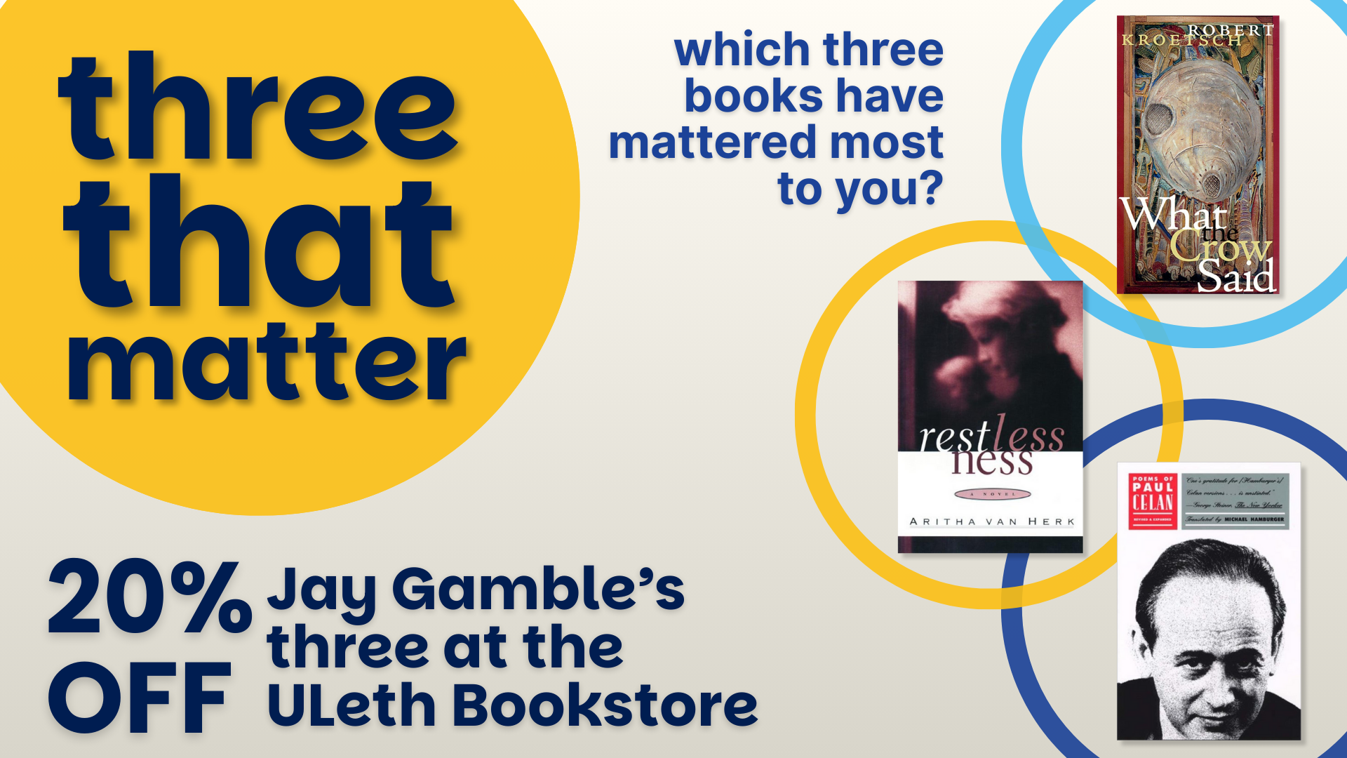 Three That Matter is an annual Bookstore initiative designed to celebrate reading as a shared, campus-wide practice. Each cycle, members of our community are invited to name three books that have shaped the way they think, work or see the world. These selections form a growing, evolving portrait of the ideas, stories and voices that circulate through our institution.