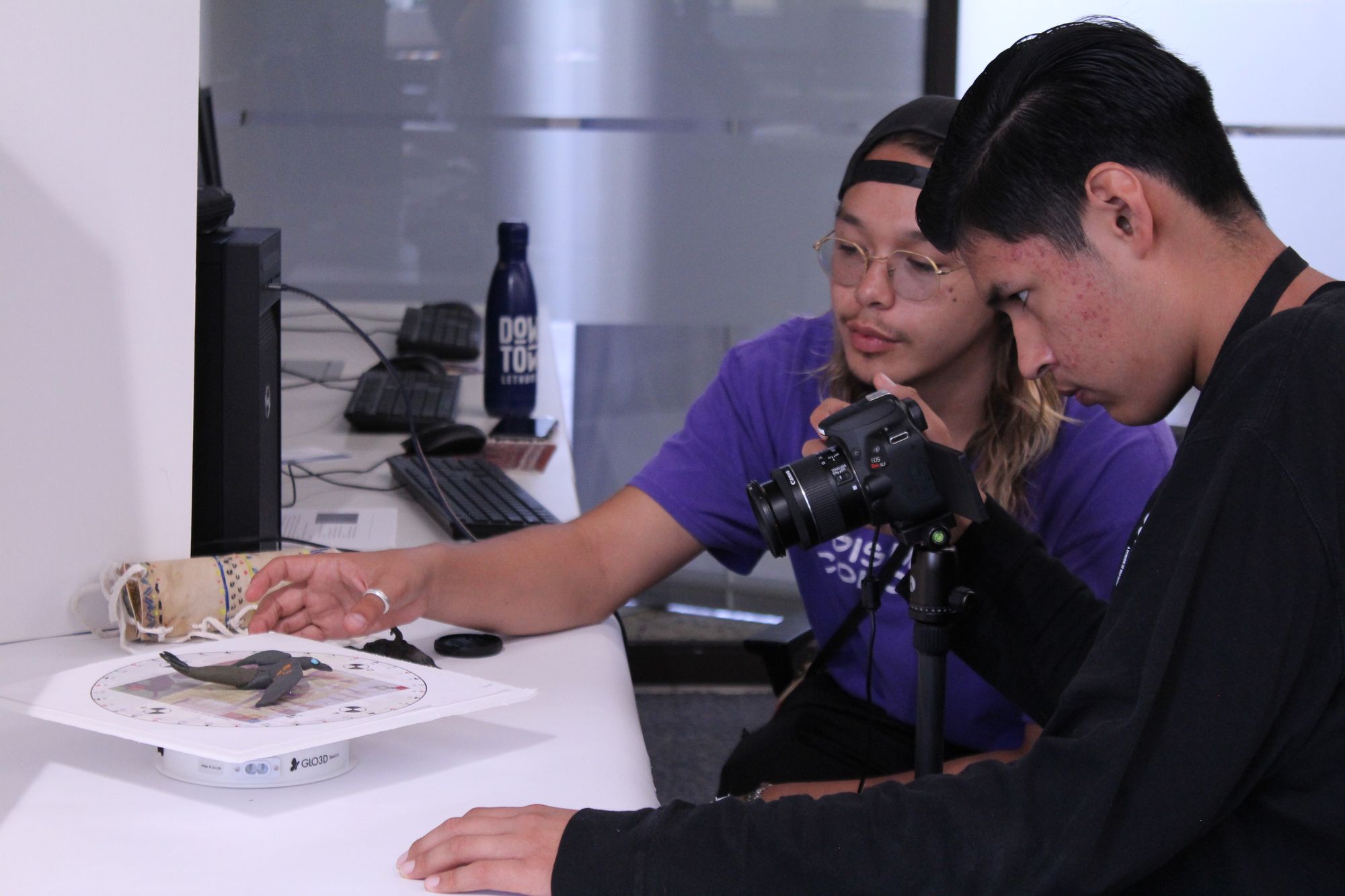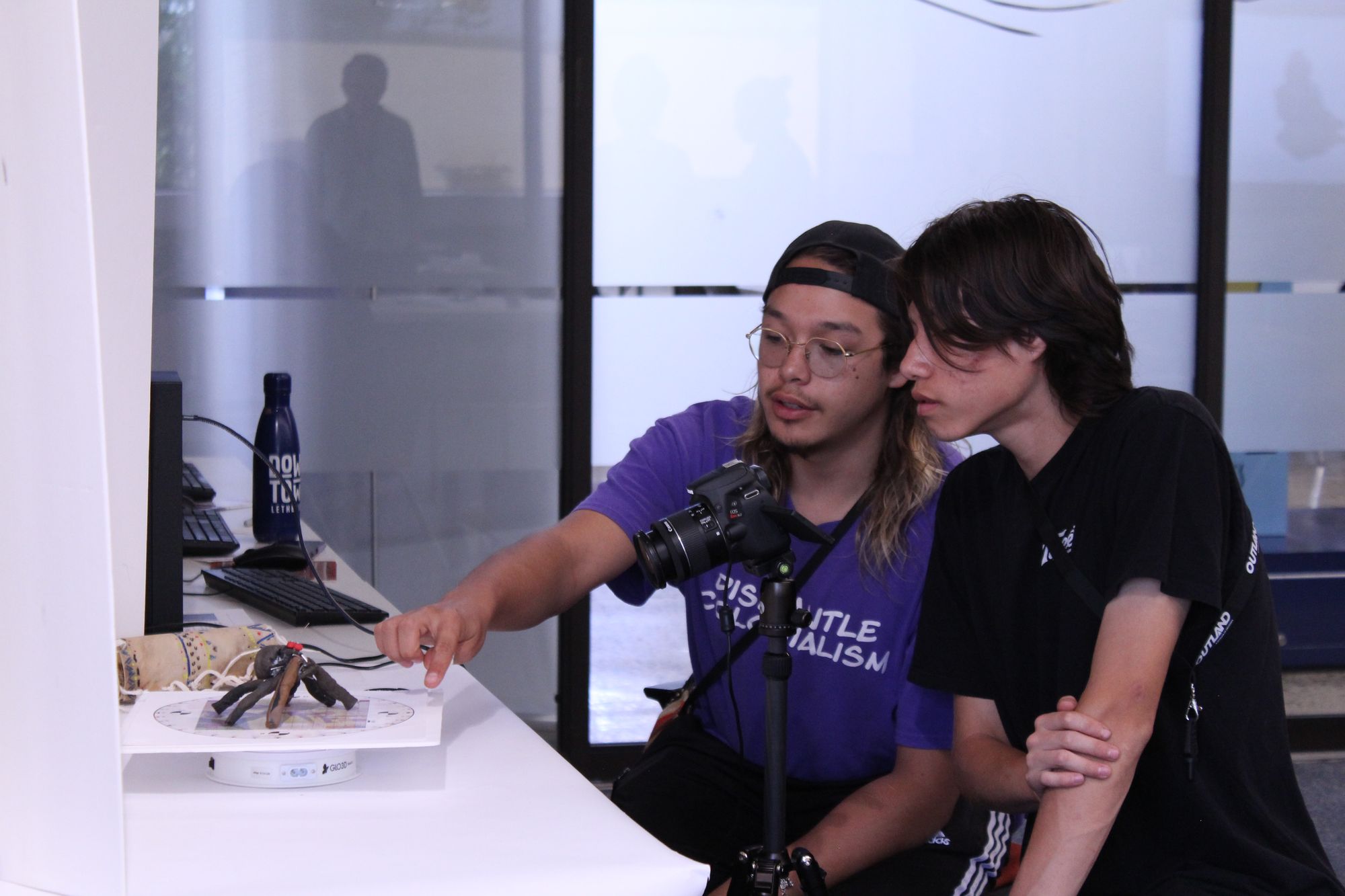 On Friday, the students took part in a Mootookakio’ssin 3D digitizing workshop led by Christine Clark, assistant professor, Department of New Media, and Dr. Josephine Mills, director/curator of the ULethbridge Art Gallery. Each one crafted their own unique sculpture from clay, wire, or any variety of art materials. Then, they learned how to create a digital 3D image of their sculpture, similar to how Mootookakio'ssin has been working with museums to digitize Indigenous artifacts.