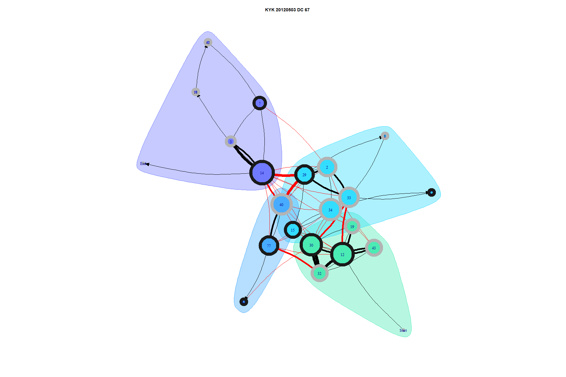 Heath is researching the organization of song in Adelaide’s warbler using network analysis and clustering algorithms. Network analysis, Heath says, is best described by drawing two circles with an arrow between them, each representing a word and the arrow indicating the order they are spoken.