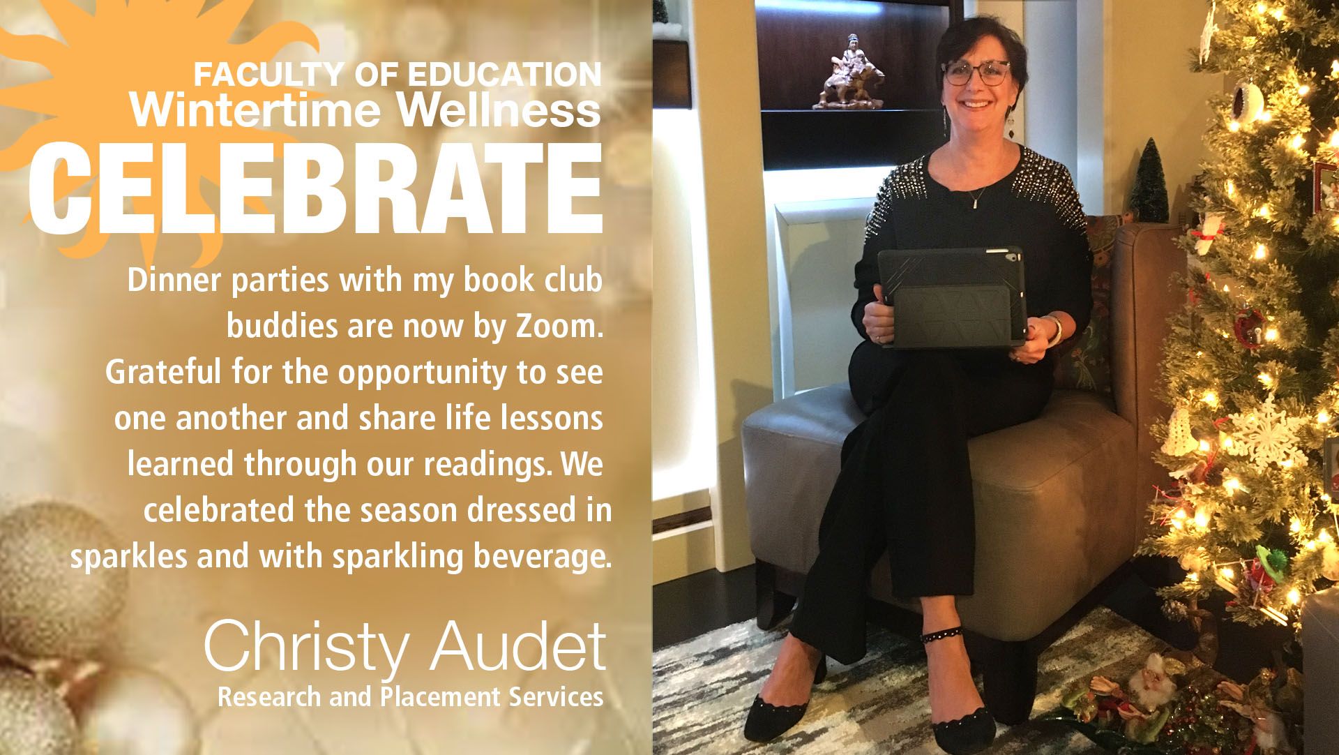 There is a large professional community to support us. As we enter into the holiday season, we are mindful of the importance of continuing to foster community, build relationships, and promote wintertime wellness. As a result, we will be posting community voices of wellness throughout the holiday season and into the new year. We hope the wellness messages and stories will inspire you to prioritize your well-being during the holidays.