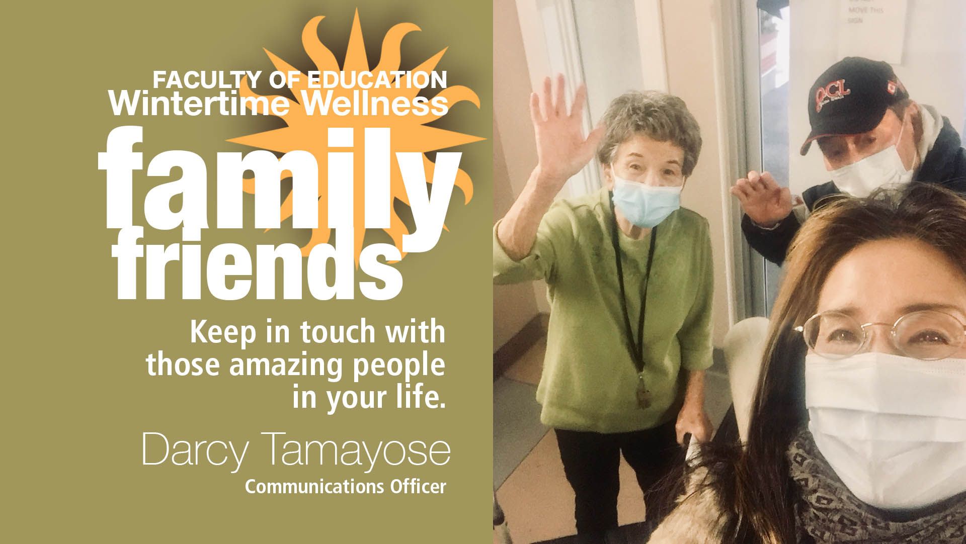 This year 2020 has been difficult for all of us. The pandemic has presented many obstacles and challenges, but as a community we have come together to support one another through these trying times. The Faculty of Education has placed great emphasis on the health and well-being of its members, students, and a community that ripples outward—this is exemplified through the ongoing faculty Wellness Initiative and with the recent Fall 2020 Wellness Challenge. With the latter, students, staff, and faculty tweeted out pictures of themselves engaging in diverse wellness activities, ranging from walking their dog to engaging in exercise, spending time with family to reading a good book. The posts served as a reminder of the importance of taking care of ourselves in order to be able to serve others in our capacity as educators—but they also demonstrate the strength we have as a community.